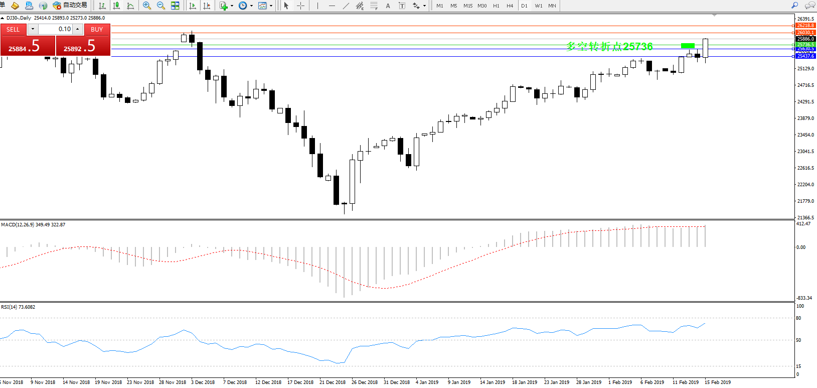 道琼斯指数DJ30—— 日K线图显示: