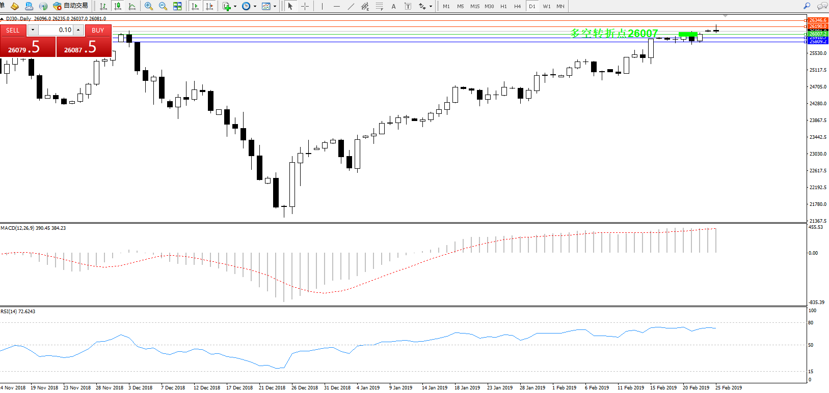 美国股市周一收盘上涨,但摆脱了盘中高位,此前美国总统特朗普称将推迟对中国输美商品加征关税,两国接近达成贸易协议。道琼斯工业平均指数收涨60.14点,涨幅0.23%,报26091.95点。美联储发布的半年度货币政策报告显示,美国经济在2018年下半年保持稳健增长,全年扩张可能略低于”3%,但消费者和企业支出已开始走软。本周还将迎来美联储主席鲍威尔在国会的证词,投资者需要予以关注。