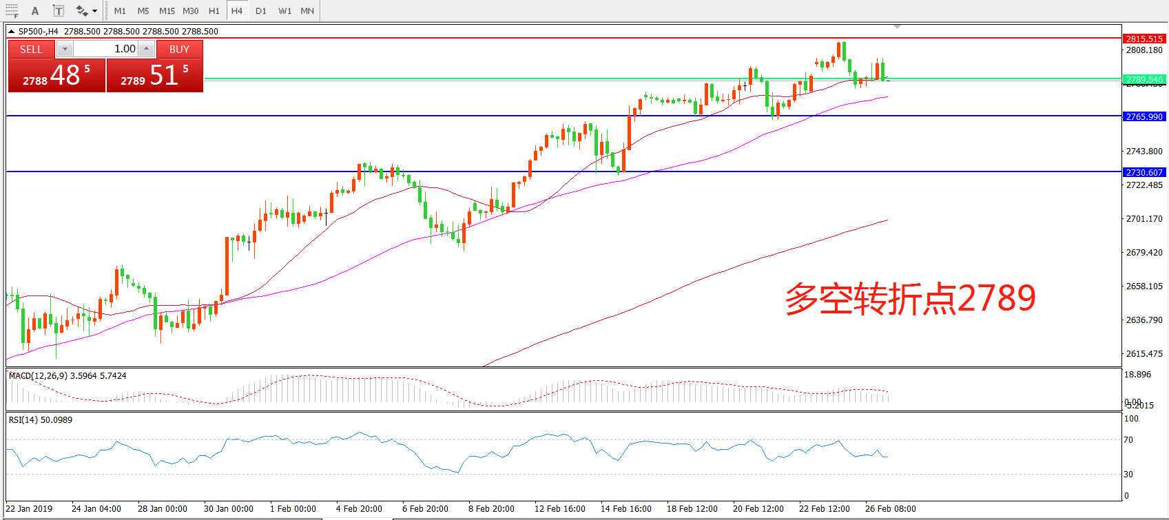 交易策略:在2789之上看涨,目标2815  2860