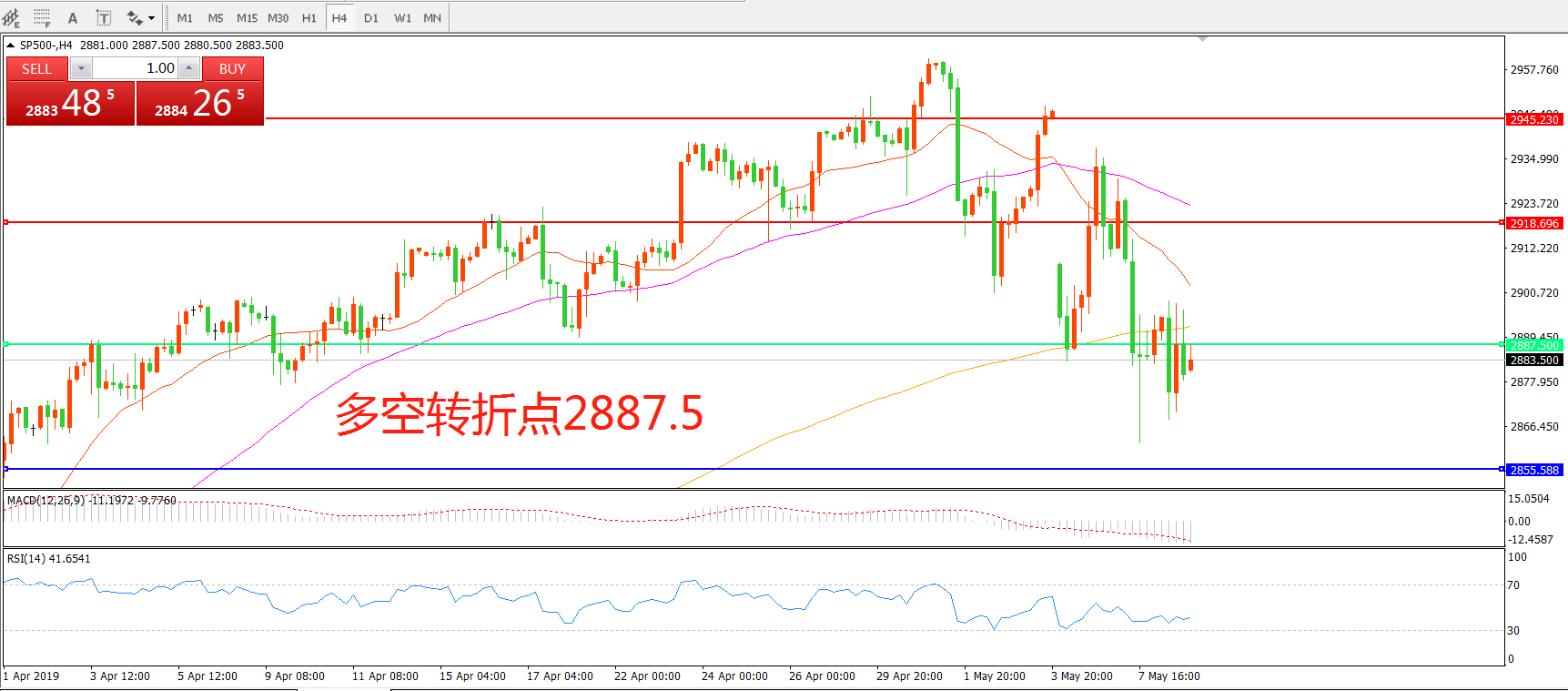 美国总统特朗普周日在推文中表示征收新的关税,这导致全球贸易紧张局势在本周迅速升温。周三晚间,商务部新闻发言人就美方拟升级关税措施发表了谈话。谈话指出,美方拟于5月10日将2000亿美元中国输美商品的关税从10%上调至25%。如果美方关税措施付诸实施,中方将不得不采取必要反制措施。受此影响,标普500指数小幅收跌,报2882.25点。