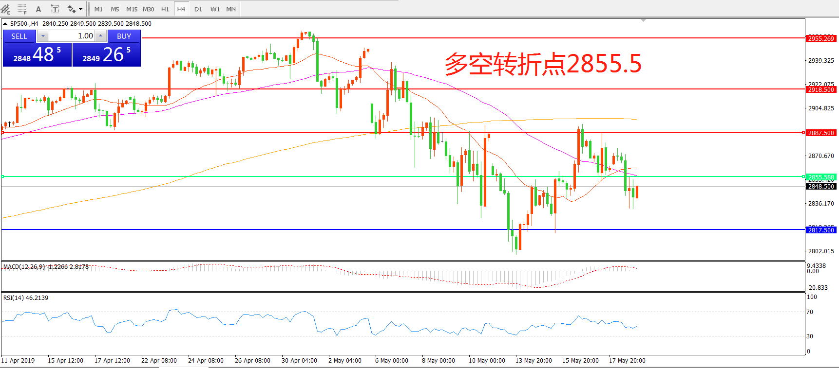 多空转折点:2855.50