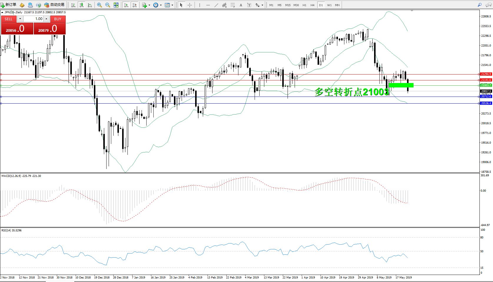 日经指数周四下跌,因中美贸易关系再次紧张起来,拖累科技股下跌,指数权重股软银集团重挫逾5%。日经指数N225收低0.6%至21,151.14点。中美贸易摩擦再度升级,加剧了日本商品生产商的担忧。隔夜道琼斯工业平均指数收跌286.14点,报25490.47点,市场担心美中贸易战不断升级将阻碍全球经济增长。美国股市在5月遭遇抛售压力,需求前景黯淡影响。