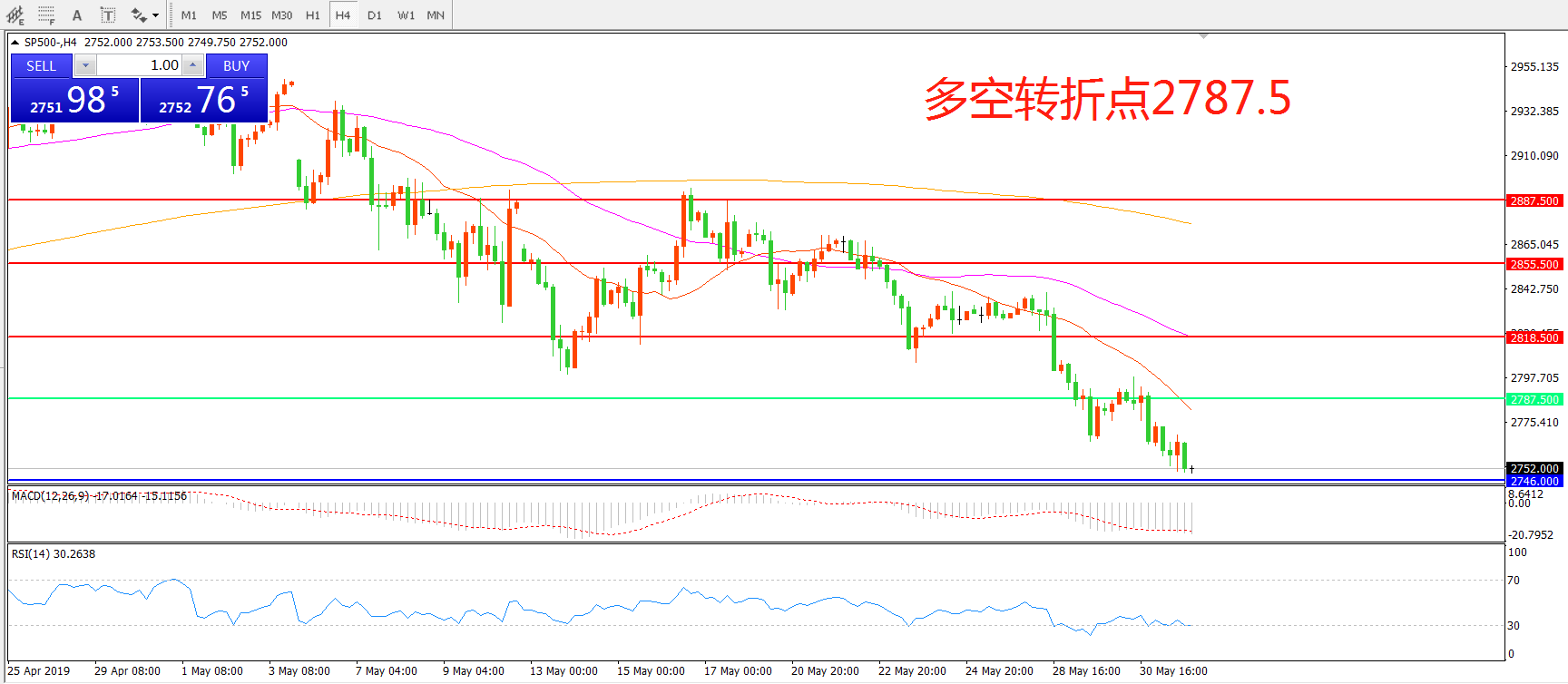 特朗普计划对墨西哥商品征收关税引发美股周五下跌。此外,中国宣布将建立“不可靠实体清单”制度引发市场担忧,标普跌1.32%,收报2752点。FANG+指数和费城半导体指数创逾十年最大单月跌幅。苹果跌1.8%,市值5月蒸发逾1100亿美元热门中概股多数收跌。老虎证券跌8.35%,IPO以来累跌41%,较4月16日高点累跌逾80%;蔚来汽车跌5.86%,该股连跌三日;