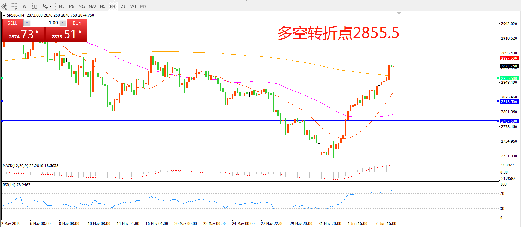 多空转折点:2855.50