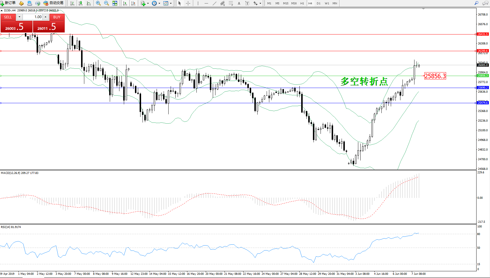 技术点评:低位V型反转拉升上行持续,突破前期压制区域后有继续上行态势,延续布林带上轨持续上攻,MACD指标多头区域持续上扬中,RSI指标多头区域突破超买区80均衡线才继续拉升中;