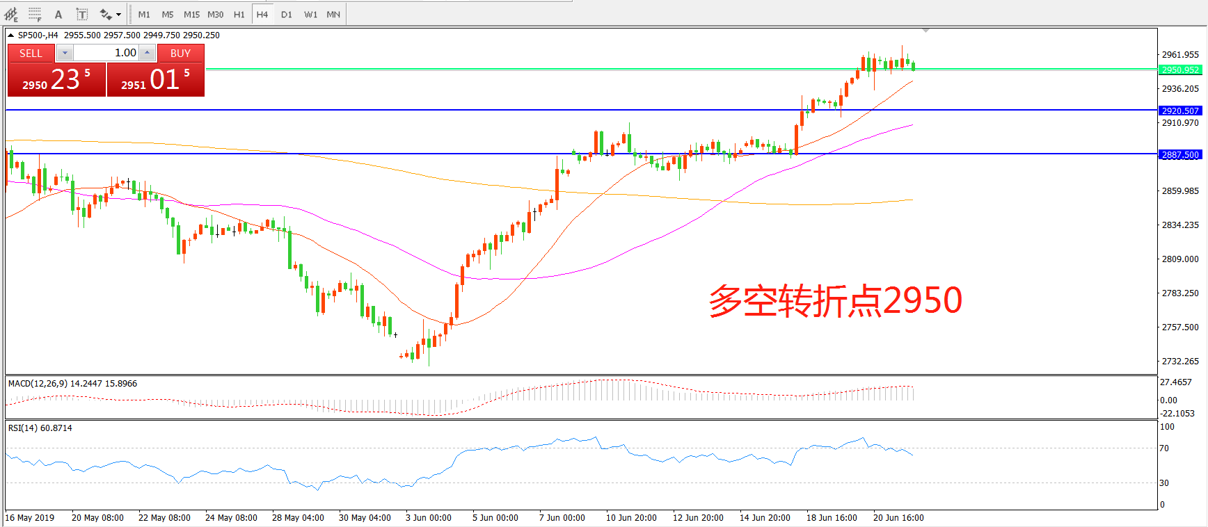 多空转折点:2950.50