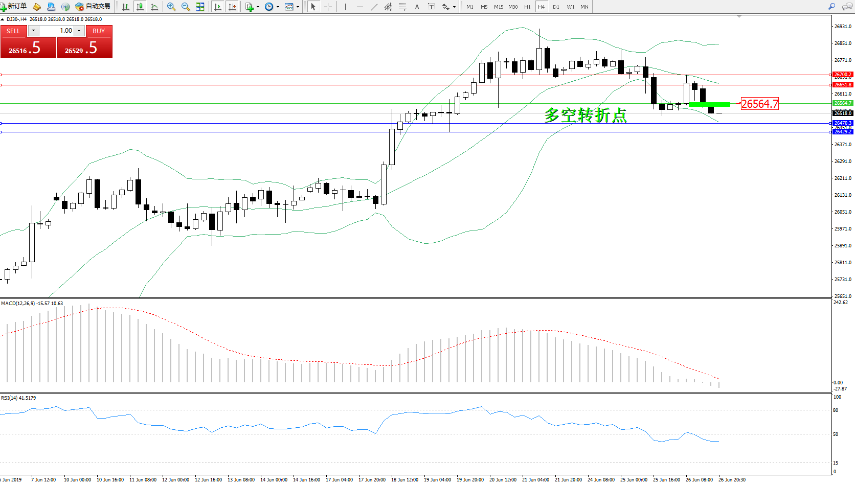 道琼斯指数626日(周三)收盘下跌11.40点,跌幅0.04%,报26536.82点。特朗普预计将与中国国家主席习近平在日本举行的20国集团峰会上会晤;特朗普说,有可能在峰会上达成协议。在圣路易斯联储主席布拉德对未来降息表示了谨慎态度,布拉德表示,将利率下调25个基点的“预防性降息”足以避免经济增长放缓幅度大于预期,认为50个基点会过头。