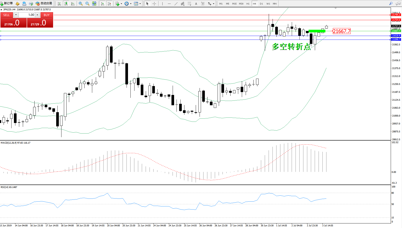 交易策略:21667上方看涨,目标21754、21794