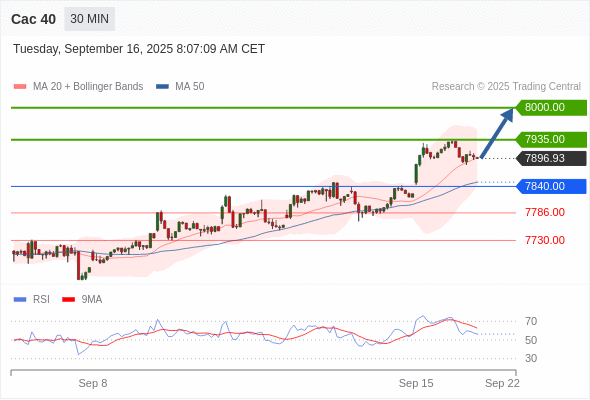 在 7840.00 之上,看涨,目标价位为 7935.00 ,然后为 8000.00 。