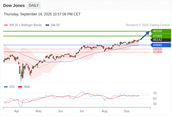 Dow Jones 短线: 进一步上涨。