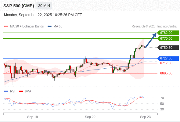 交易策略: 在 6727.00 之上,看涨,目标价位为 6770.00 ,然后为 6782.00 。