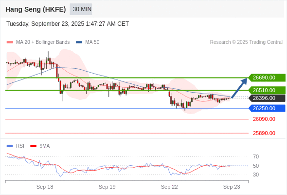 香港恒生指数期货 当日内: 超短线(当日内)支撑位在26250.00附近。