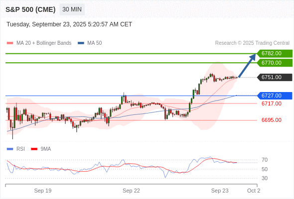 交易策略: 在 6727.00 之上,看涨,目标价位为 6770.00 ,然后为 6782.00 。