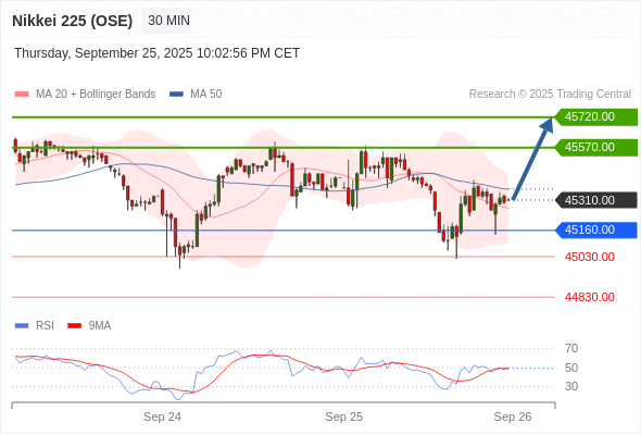 在 45160.00 之上,看涨,目标价位为 45570.00 ,然后为 45720.00 。