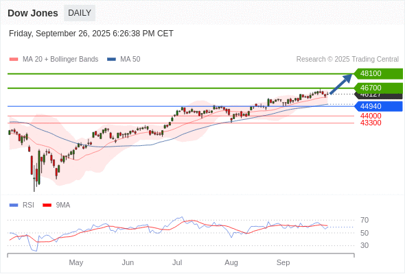 在 44940 之上,看涨,目标价位为 46700 ,然后为 48100 。