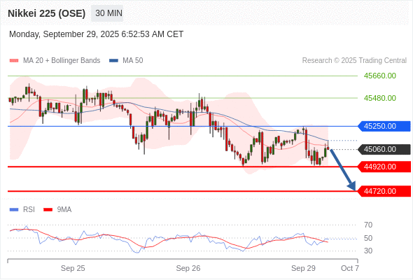 在 45250.00 之下,看跌,目标价位为 44920.00 ,然后为 44720.00 。
