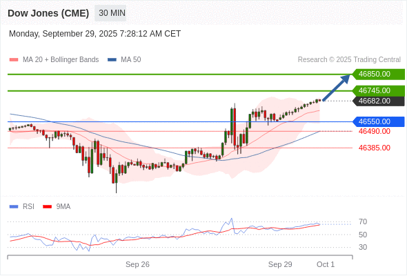 在 46550.00 之上,看涨,目标价位为 46745.00 ,然后为 46850.00 。