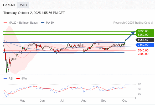 Cac 40 短线: 看涨。