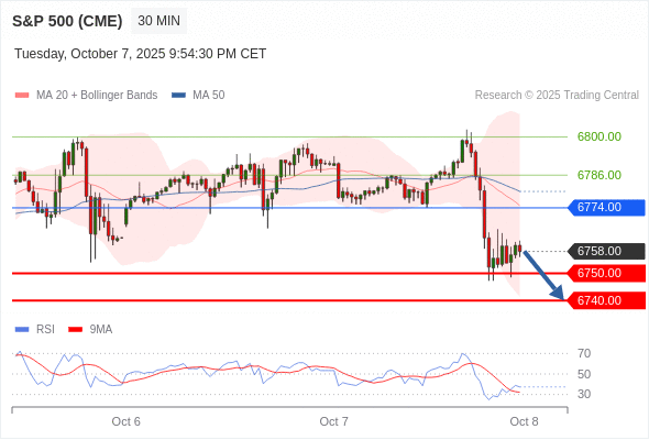 在 6774.00 之下,看跌,目标价位为 6750.00 ,然后为 6740.00 。