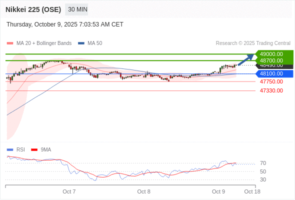 日经225股指期货 (OSE) 当日内: 目标位为49000.00。