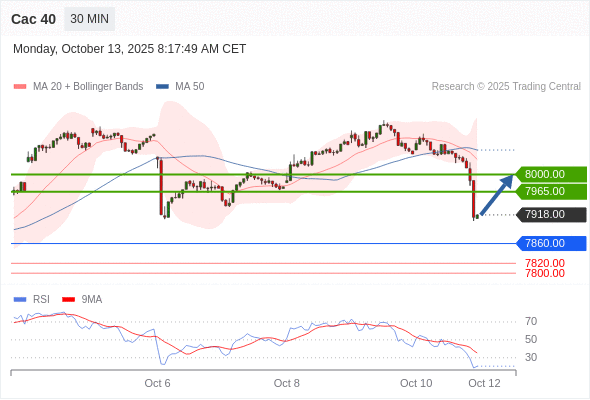 在 7860.00 之上,看涨,目标价位为 7965.00 ,然后为 8000.00 。