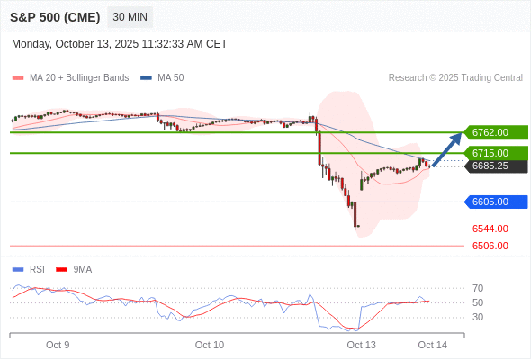 在 6605.00 之上,看涨,目标价位为 6715.00 ,然后为 6762.00 。