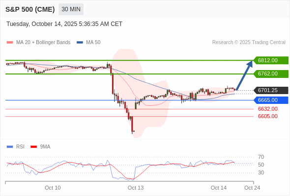 在 6665.00 之上,看涨,目标价位为 6762.00 ,然后为 6812.00 。