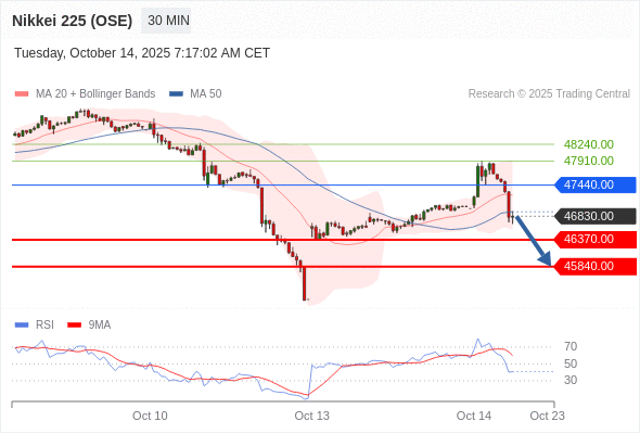 交易策略: 在 47440.00 之下,看跌,目标价位为 46370.00 ,然后为 45840.00 。