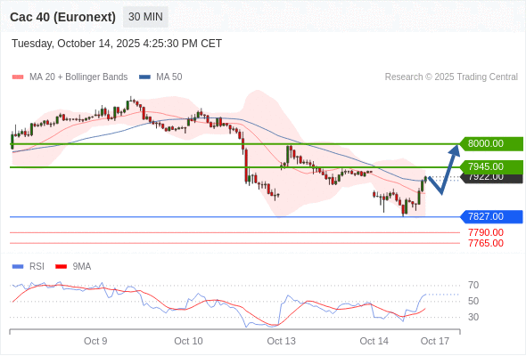 在 7827.00 之上,看涨,目标价位为 7945.00 ,然后为 8000.00 。