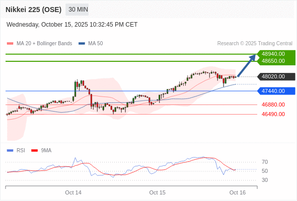 在 47440.00 之上,看涨,目标价位为 48650.00 ,然后为 48940.00 。