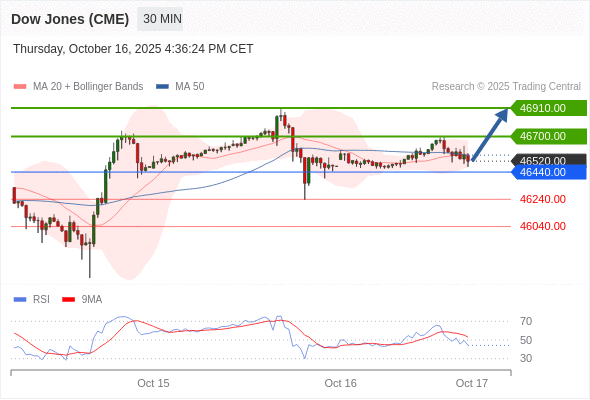 在 46440.00 之上,看涨,目标价位为 46700.00 ,然后为 46910.00 。
