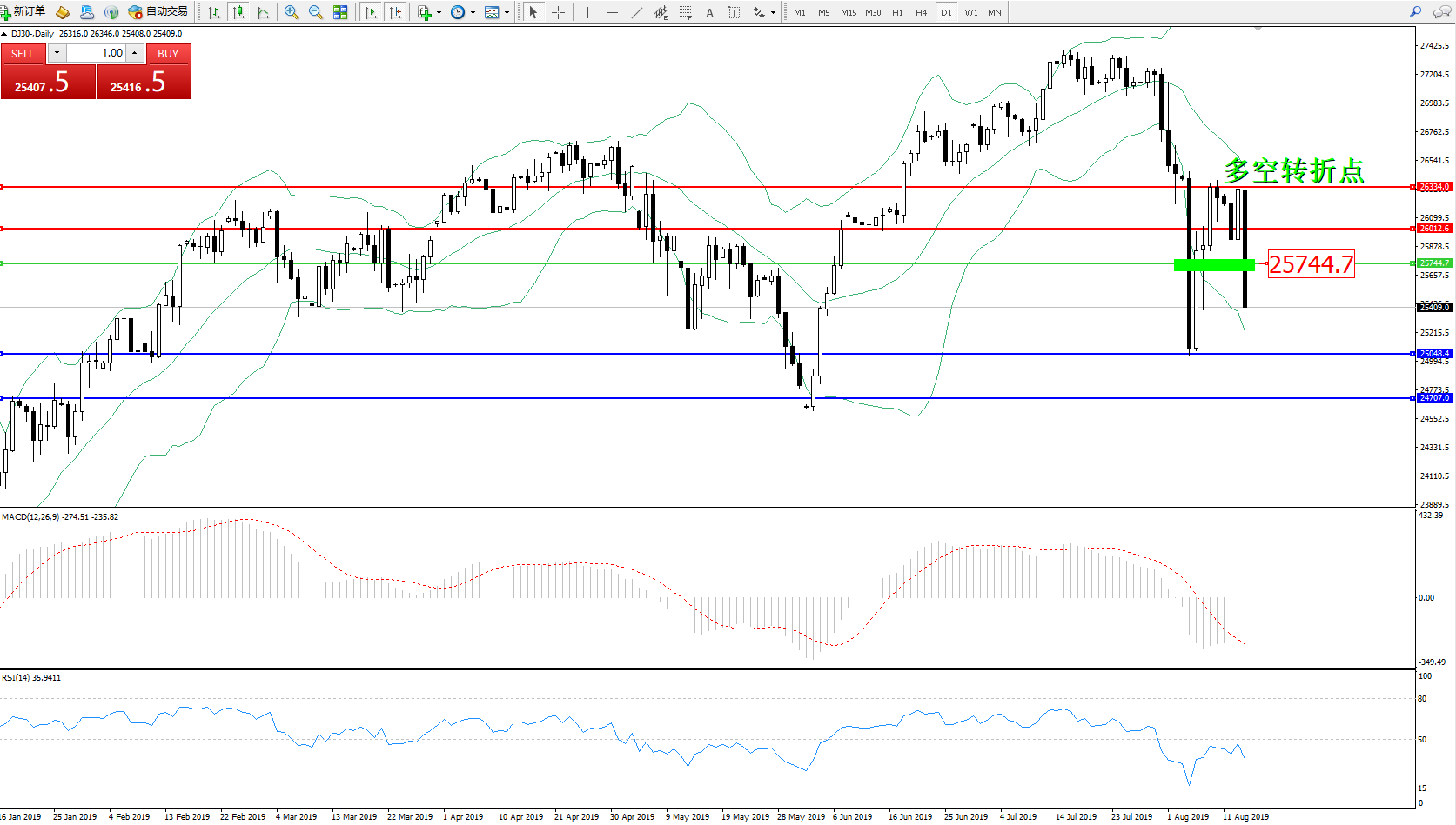 道琼斯指数8月14日(周三)收盘下跌800.50点,跌幅3.05%,报25479.42点。前美联储主席耶伦:历史上来看,国债收益率曲线倒挂或不是经济衰退的适宜指标,触发美债收益率跌向零的因素,即衰退风险,比预期来得要早,而且可能加快美国加入日本和德国等负收益率俱乐部的进程。导致企业减少或推迟支出、进而使全球资本支出下降的贸易摩擦是催化因素。美联储防止美国经济陷入衰退的力量可能会减弱,到2021年10年期美债收益率可能下跌至零。这比上月预测提早了一年。触发因素提早发生了,债券市场正在更快地做出行动。