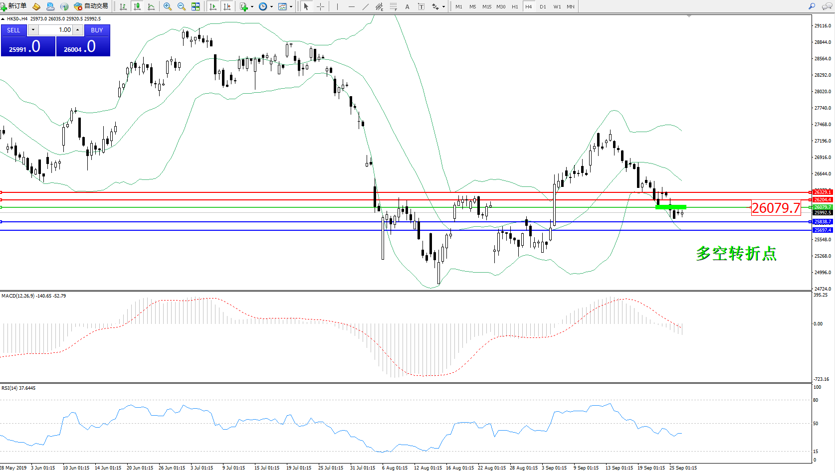 香港恒生指数9月26日(周四)收盘上涨96.58点,涨幅0.37%,报26041.93点;港股早上高开后,再小量扩大升幅,恒指高见26099,并收复26000关口,截至今日收盘,恒指大市成交额报703.25亿港元(上一交易日成交额为75.7亿港元)。目前启动弹劾程序阻力较大,需要观察共和党内部是否分裂,特朗普目前民调支持率仍然较高,特朗普把连任放在头等要务,势必会放出一系列“利好”,对冲弹劾带来的负面影响,例如,缓和关于贸易的情绪, 对于恒指来说,无疑是一个短暂的宽松环境。