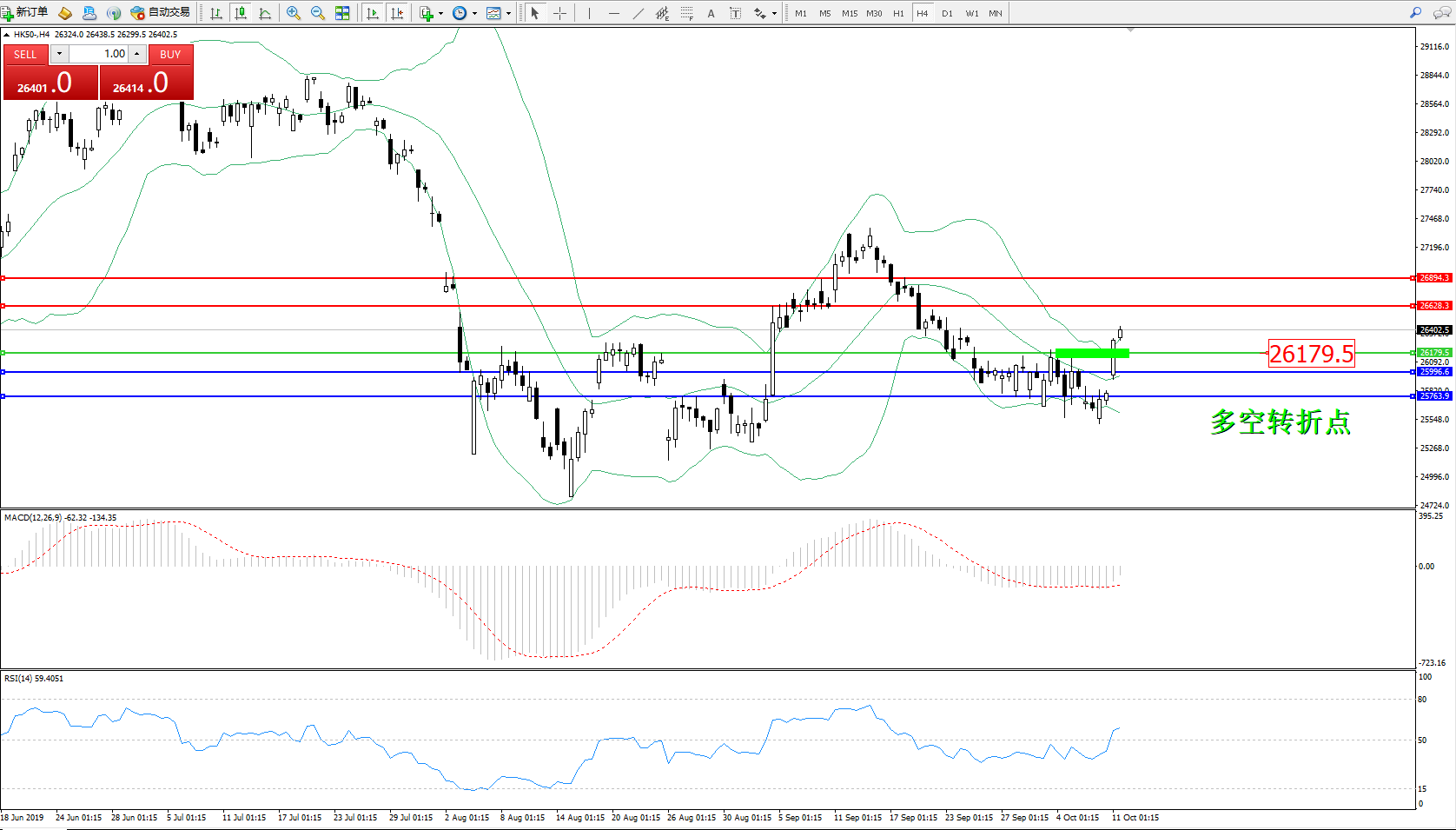 香港恒生指数10月11日(周五)收盘上涨600.51点,涨幅2.34%,报26308.44点;恒指早间跟随外围市场利好高开高走,随后再逐步扩大升幅,恒指最高26280,再重上26000关口,续在高位上横行。美国9月CPI环比持平,9月核心CPI环比增0.1%,不及预期的0.2%,给予了美联储继续降息的空间。市场对国际贸易关系前景感到乐观,但最终的结果未出,依然具备较大的不确定性。