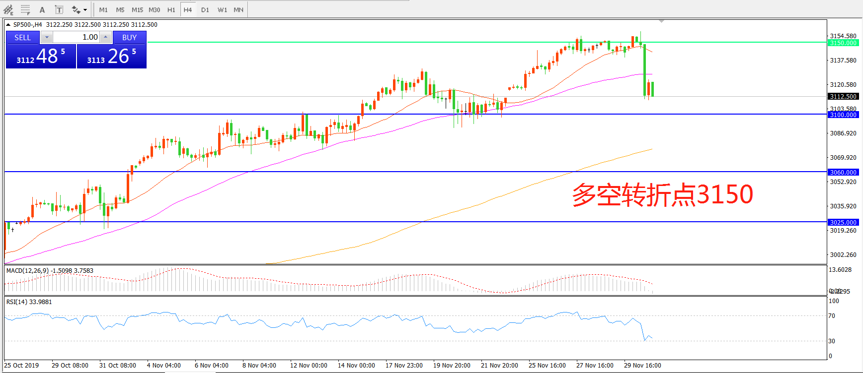 交易策略:在3150.00之下看跌,目标3100.00 3060.00