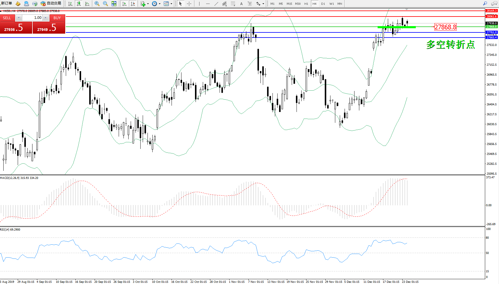 香港恒生指数圣诞节前收盘下跌0.15%,报27869.38点。早盘恒指、国指低开后窄幅震荡,主板半日成交301.43亿港元。受圣诞假期影响,恒指持续维持在高位窄幅震荡走势中,从板块上看,工业大麻股、物流股、特斯拉概念股、内地教育股、阿里概念股等板块领涨,而奶制品股、光伏太阳能股、航空股、纸业股、电力股等板块领跌。英国“脱欧”与贸易协议前景明朗化对市场气氛影响正面,但假日时期,港股成交通常偏淡。