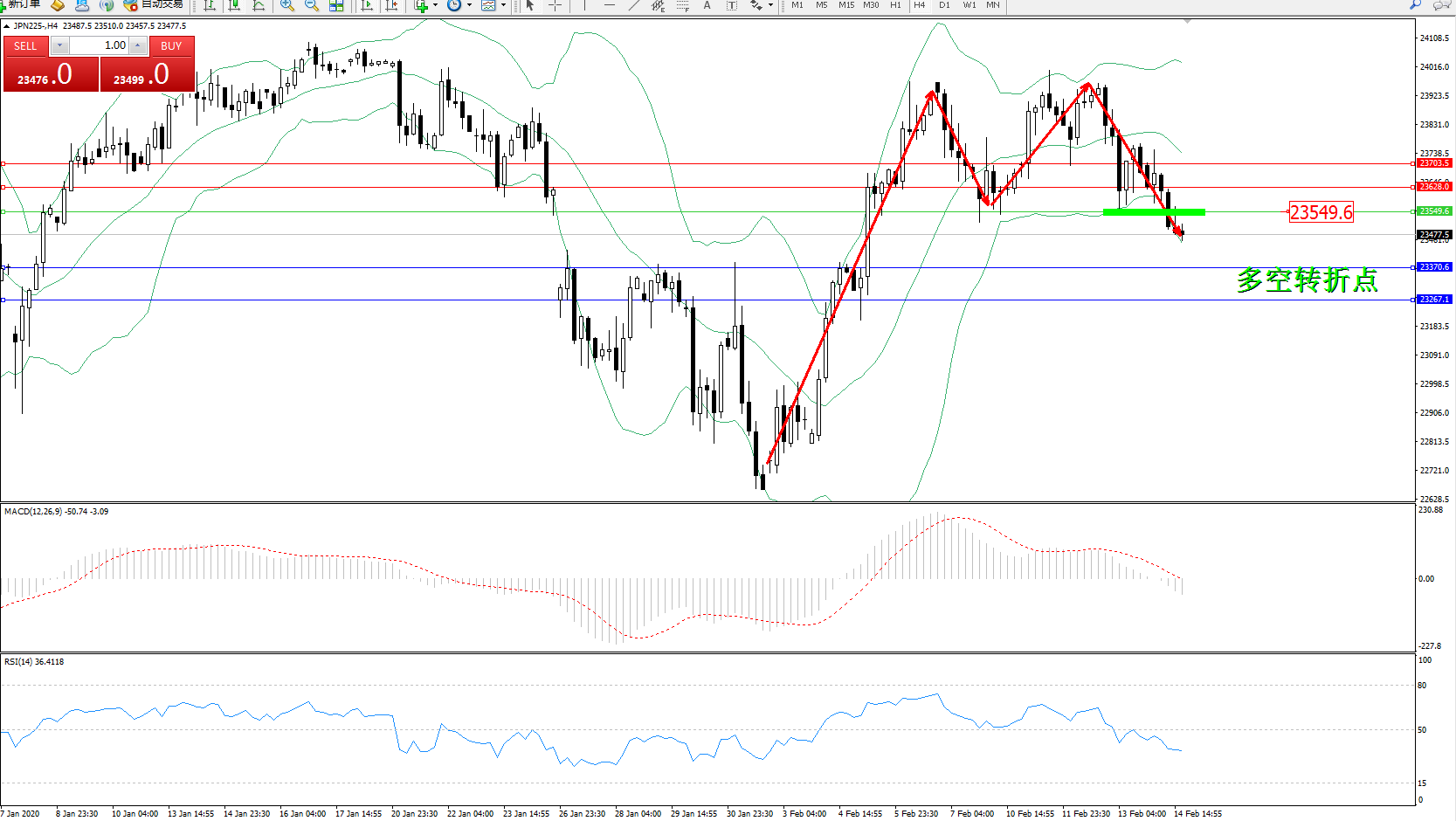 交易策略:23549下方看跌,目标23370、23267