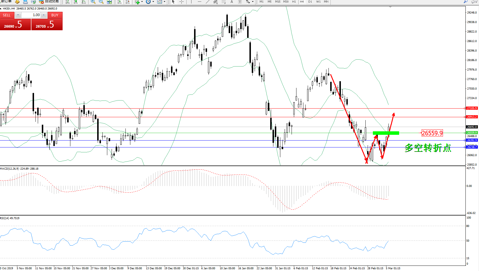 香港恒生指数3月5日(周四)收盘上涨545.80点,涨幅2.08%,报26767.87点;隔夜美股大涨,随着疫情持续趋于缓和,复工潮来临,行业或加快复苏。港A两地市场齐升,亚太股市收盘全线走高。港股主要股指高开上涨,,恒指大涨550点。市场信心一片大好,行业板块近乎集体上涨,腾讯、瑞声等主要蓝筹皆大涨。主板成交量为13226.28亿港元,港股通净流入68.74亿港元。美联储的大幅降息,反而给美股市场带来恐慌,但恐慌过后,市场开始缓解过来。情绪是需要有事件来推动的,这个因素就是来自于这几天反复强调的美国超级周二的初选。