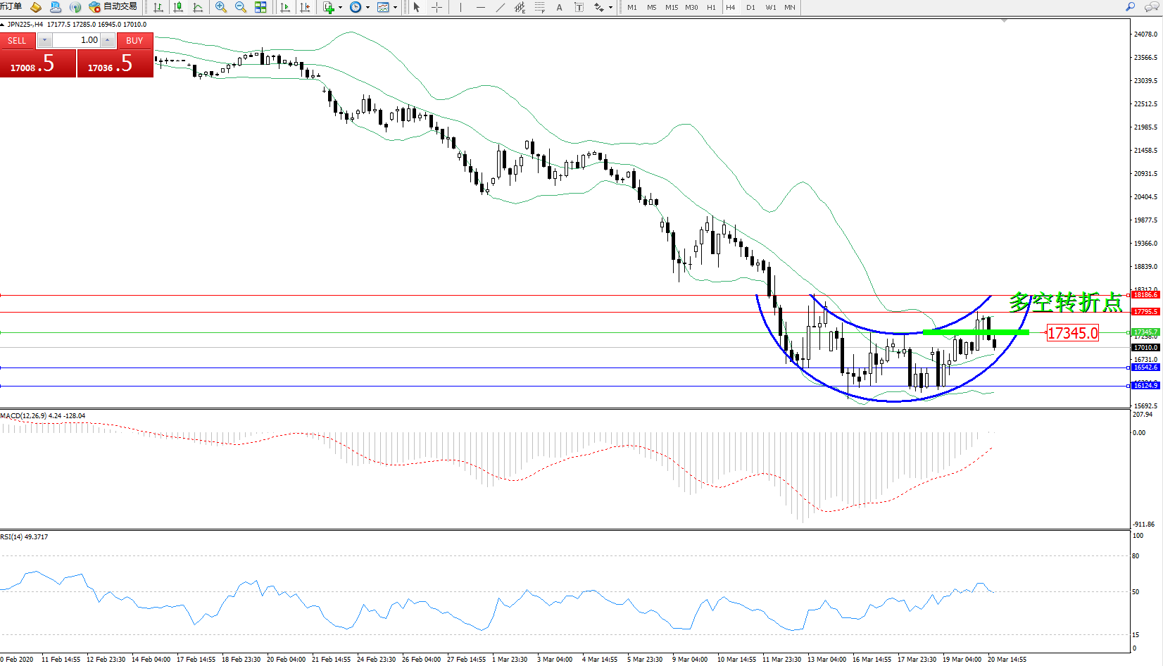 日经225指数319日(周四)收盘下跌180.05点,跌幅1.08%,报16546.50点。上周五日交易所休市,日内金融市场恐慌延续,美元再度走高,现金美元的紧缺令投资者依旧选择抛售所有有价资产,此外日本央行将视需要以灵活的方式应对市场形势,先前日本央行提议在计划外的操作中购买1万亿日元债券。这种购买旨在确保“在财年结束之前保持市场稳定”,日本财务大臣麻生太郎:预计日本将在控制疫情方面领先于美国。日本央行和财务省的合作关系良好。日本政府与日本央行之间的关系要远比美国政府与美联储的关系好。决策者必须以冷静的心态来应对当前的形势,而不是在市场上引发恐慌。