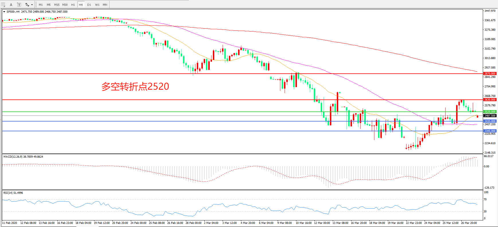 多空转折点:2520.00