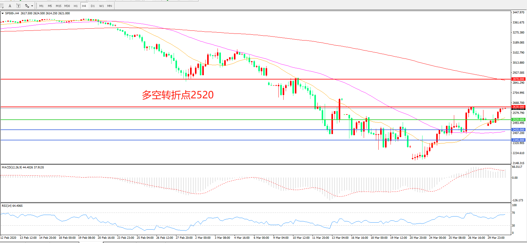 周一(3月31日),在美国加大力度遏制疫情蔓延后,标普500高开高走,收报2621点,延续上周强劲反弹,这意味着在美股早前重挫后,市场投资者的信心已逐步趋于稳定,在现阶段的股市不会像先前那样触发大量的强制平仓单引发连锁崩跌。大型科技股集体上涨。苹果涨2.85%,亚马逊涨3.36%,中概股多数收涨。阿里巴巴涨1.42%,京东涨0.6%。