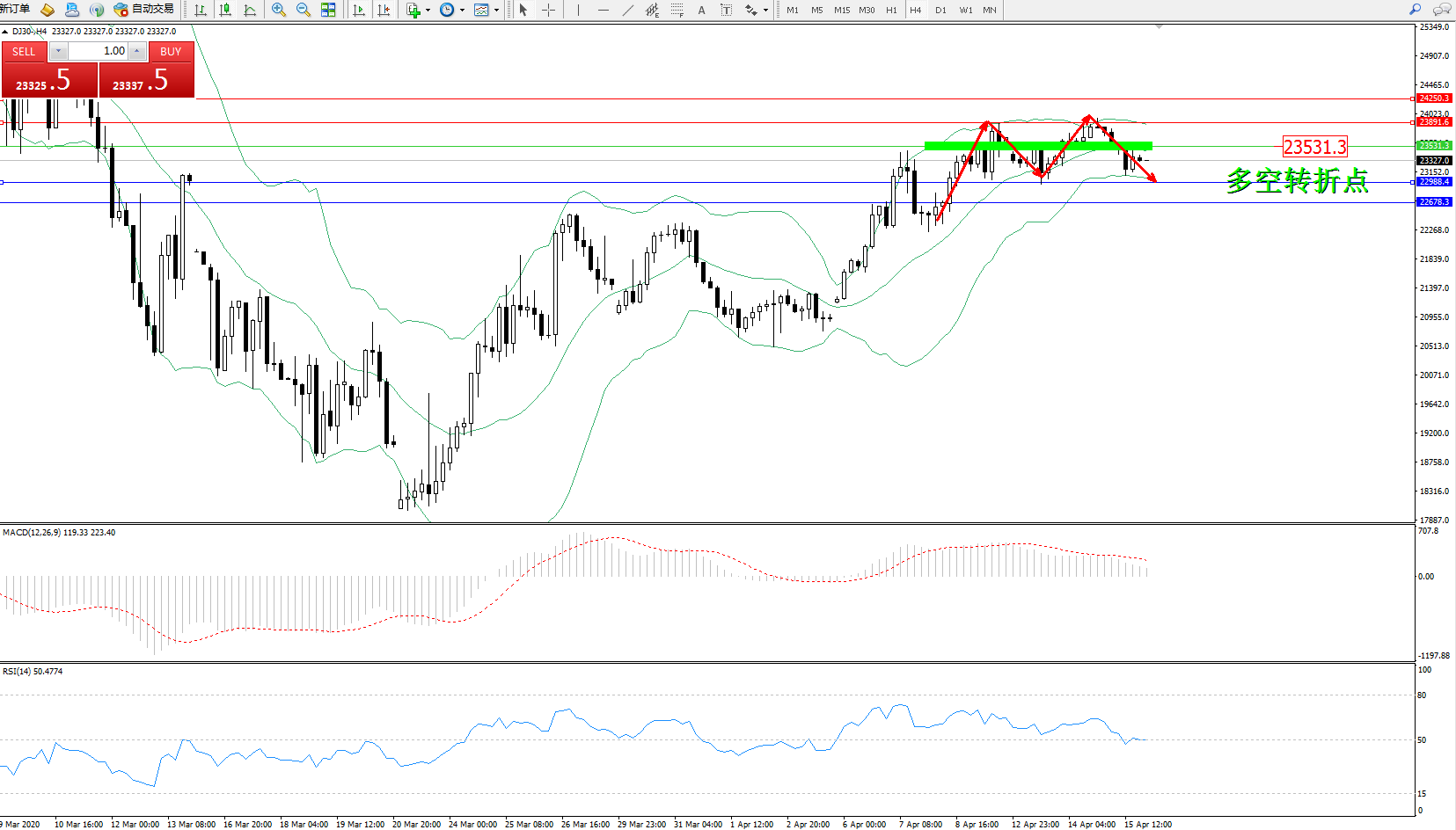 道琼斯指数4月15日(周三)收盘下跌445.40点,跌幅1.86%,报23504.35点。美股收跌,道指跌440点,投资者聚焦财报以判断疫情对企业盈利及经济的影响,并关注官方的重启经济计划。历史性疲软的美国经济数据和大银行提取更多坏账拨备的财报,令美国10年期国债收益率一度下跌14个基点至0.62%。美国国债收益率的急剧下降和美国股市的反弹帮助美元削减了涨幅;此前,经济增长担忧刺激的避险买盘推动美元大幅上涨。美联储褐皮书称美国经济活动急剧萎缩。美国3月零售销售锐减、4月纽约制造业指数降至历史最低水平。