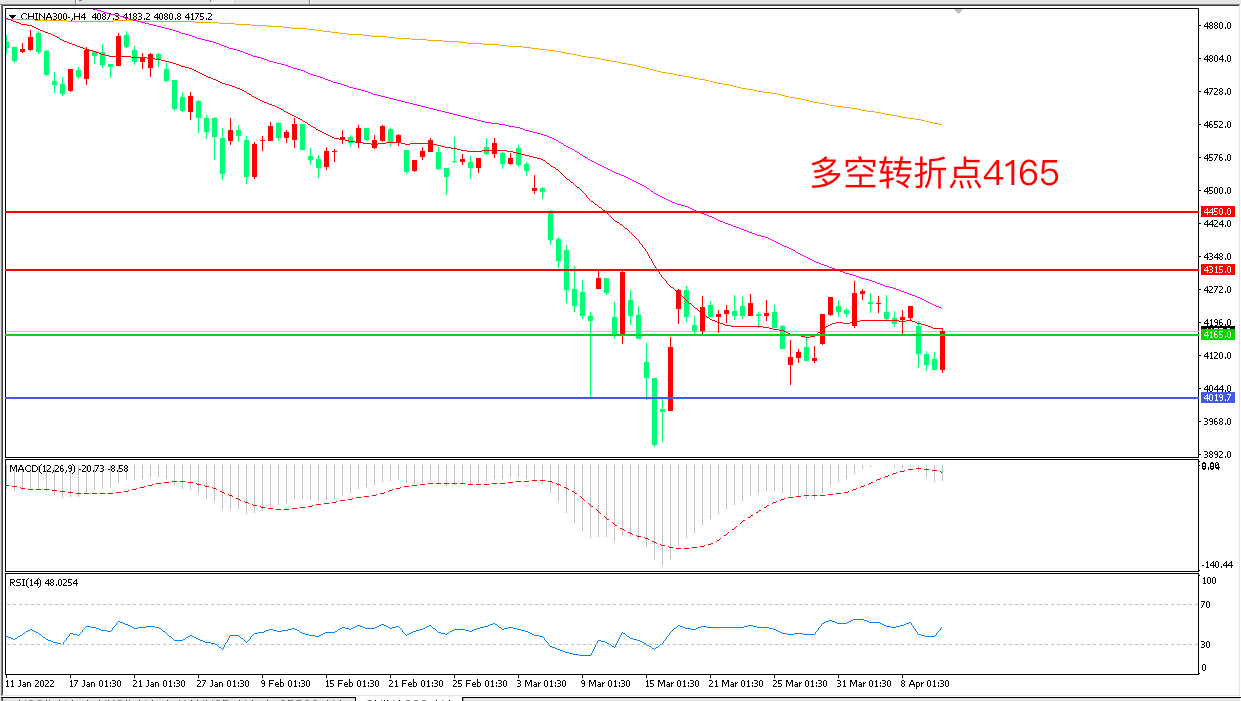 交易策略:在4165.00之下看跌,目标4020.00                3850.00