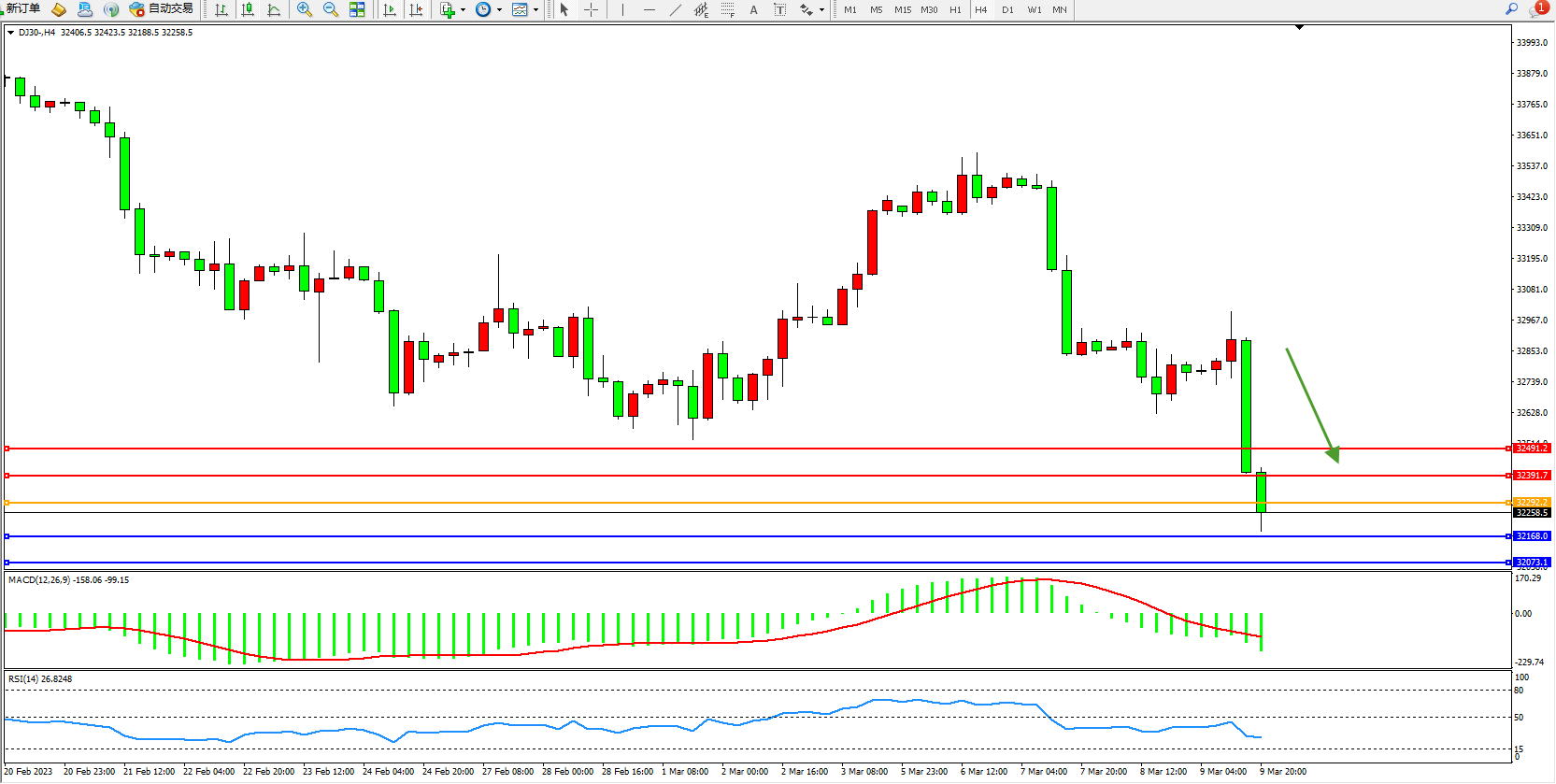 道琼斯指数3月9日(周四)收盘下跌542.35点,跌幅1.65%,报32256.05点;美国上周初请失业金人数超过预期,但基本趋势仍指向就业市场紧张。初请失业金人数此前连续七周低于20万人,显示科技行业高调裁员并未对就业市场产生实质性影响。