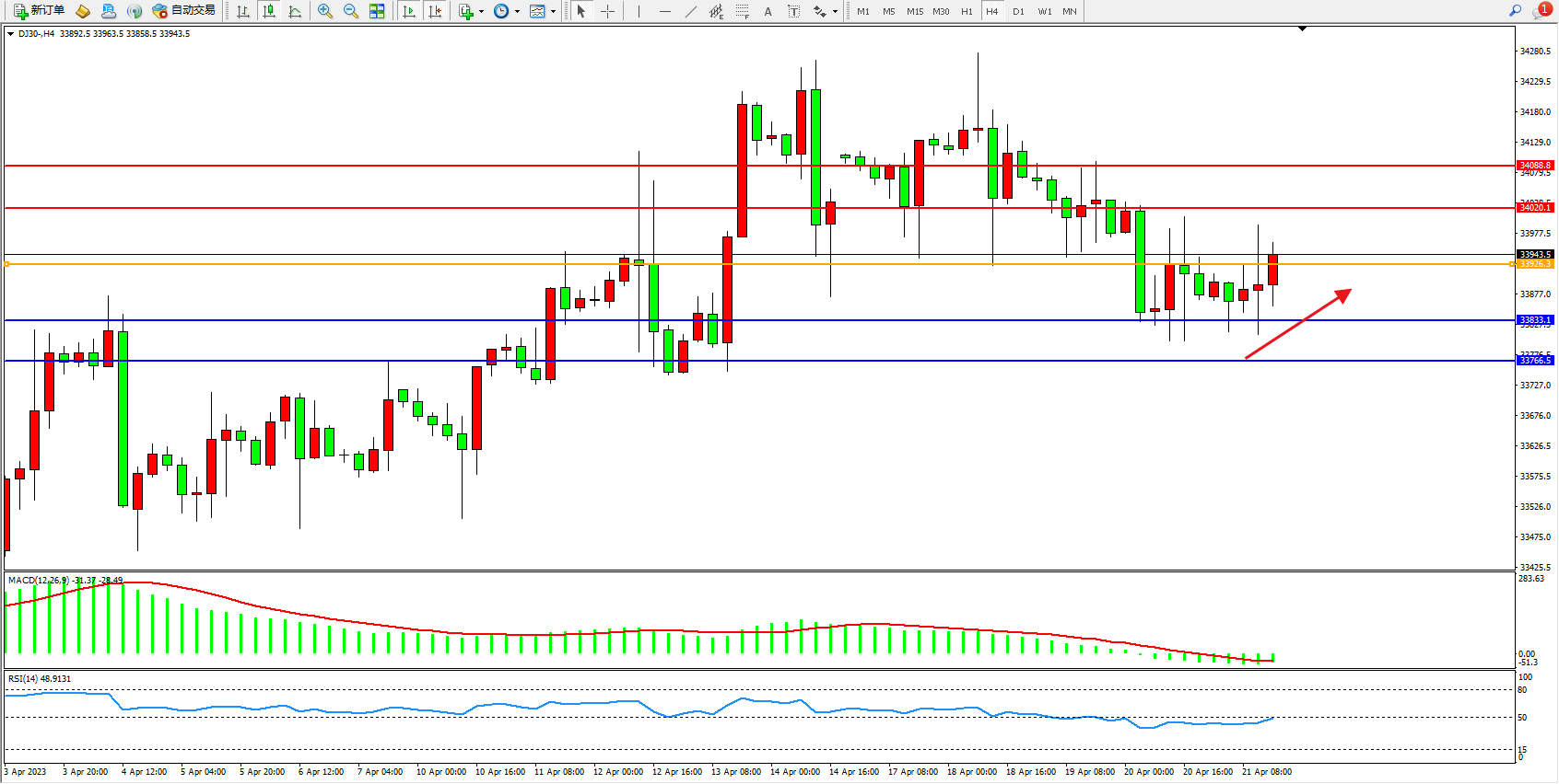 道琼斯指数4月21日(周五)收盘上涨22.41点,涨幅0.07%,报33809.03点;美国企业的商业预期在4月份保持乐观,对未来一年前景的信心程度升至2022年5月以来的第二高水平。数据表明消费者价格通胀可能出现回升,或者至少有一定的粘性。