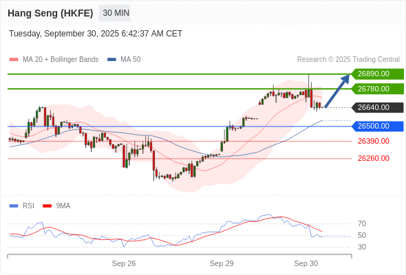 在 26500.00 之上,看涨,目标价位为 26780.00 ,然后为 26890.00 。