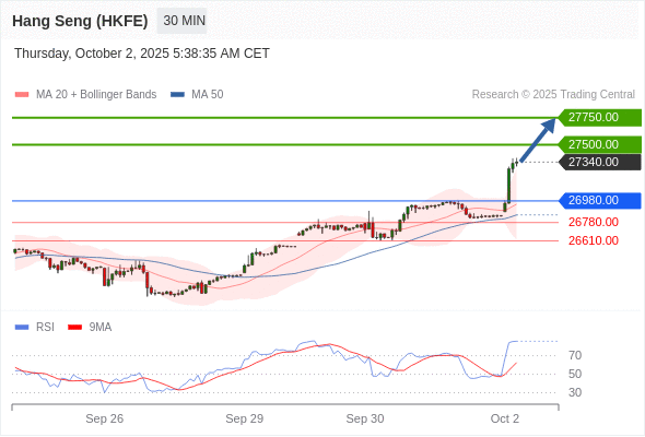 香港恒生指数期货 当日内: 目标位为27750.00。