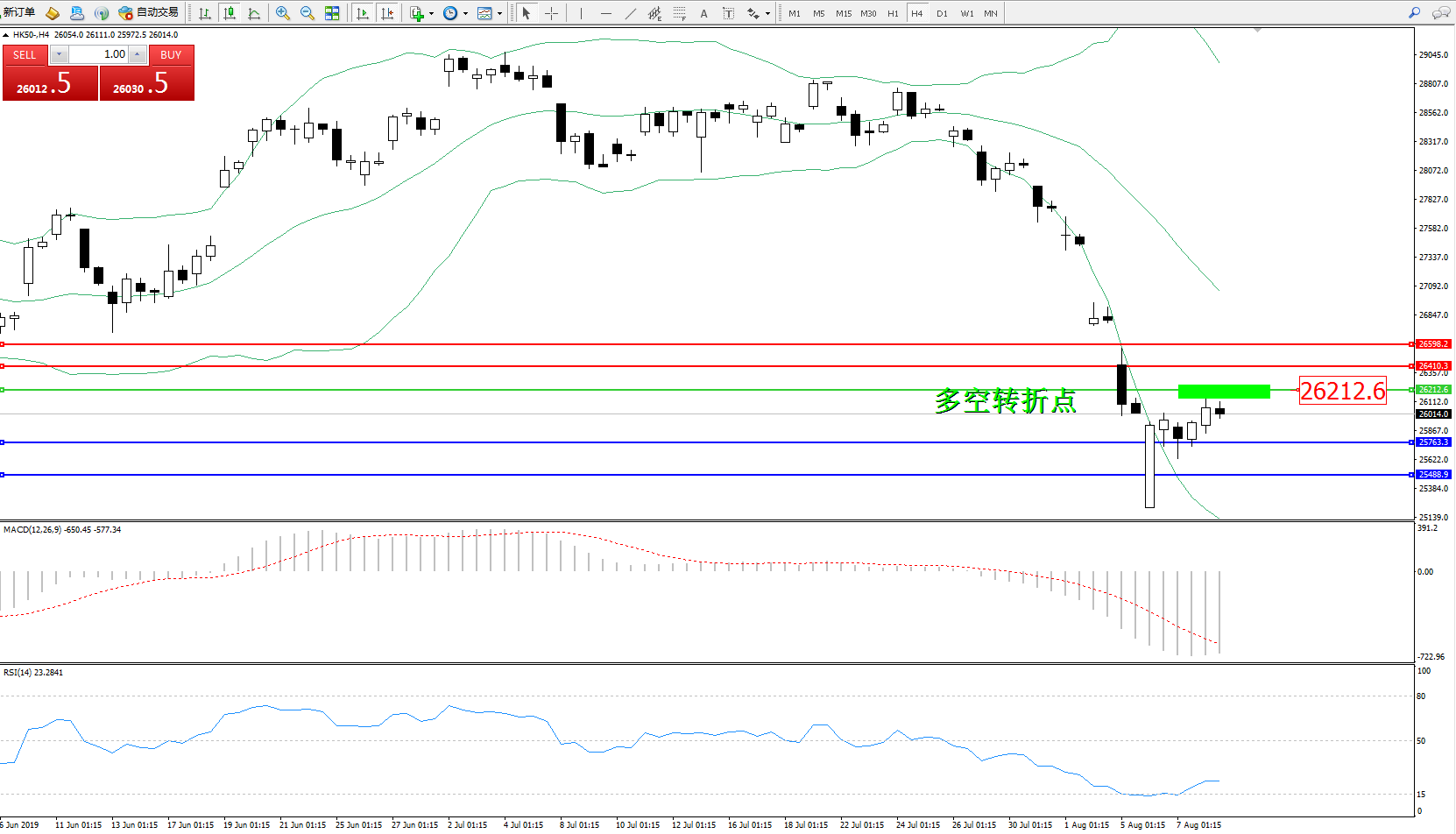 香港恒生指数8月8日(周四)收盘上涨123.74点,涨幅0.48%,报26120.77点;早盘恒指高开高走,重返26000点,此后涨幅更是扩大至1%,不过尾盘涨幅有所收窄。成交未见增加配合,相信也是短线反弹,继续趁高位空头减弱,以避风险。恒指的整体走势仍然处于回调的走势内,港股仍然难说已经见底,尤其是近期较多的机构投资者在收盘后的竞价时段沽价,令资金外流,这可能会继续利空港股。
