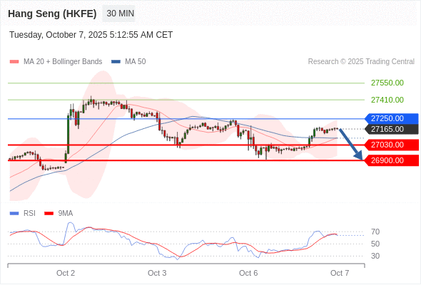 香港恒生指数期货 当日内: 短期关键阻力位在27250.00。
