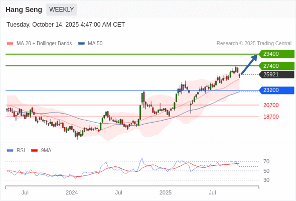 恒生指数 中期: 看涨。